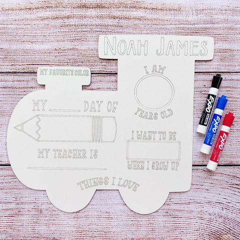 ***This is a digital file. NOTHNG PHYSICAL WILL BE SHIPPED TO YOU. Nothing physical will be provided. It is a downloadable digital file only. Back to School Train Laser Cut File. Add your own text...