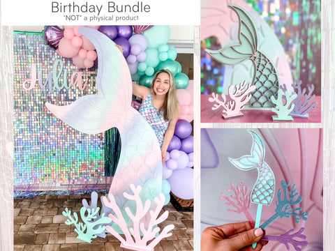 Mermaid Tail Birthday Bundle with Coral, Party Decoration, Digital Download, SVG