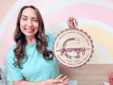 🌸 Grandma • Mom • Nana Initial Sign Bundle – Layered Laser Files One design. Three heartfelt versions. This layered round sign bundle includes: Grandma version Mom version Each design features: A bold floral-filled initial...
