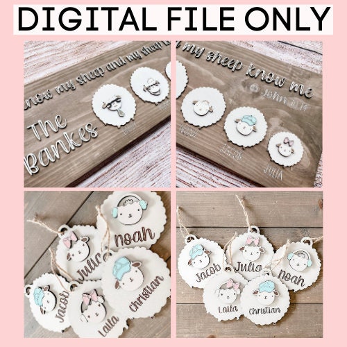 Easter Sheep Family Sign & Tags Bundle - Digital Laser Cut File
