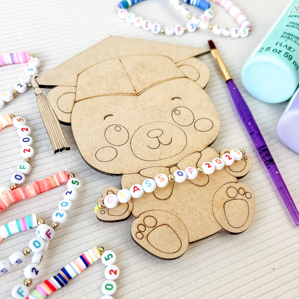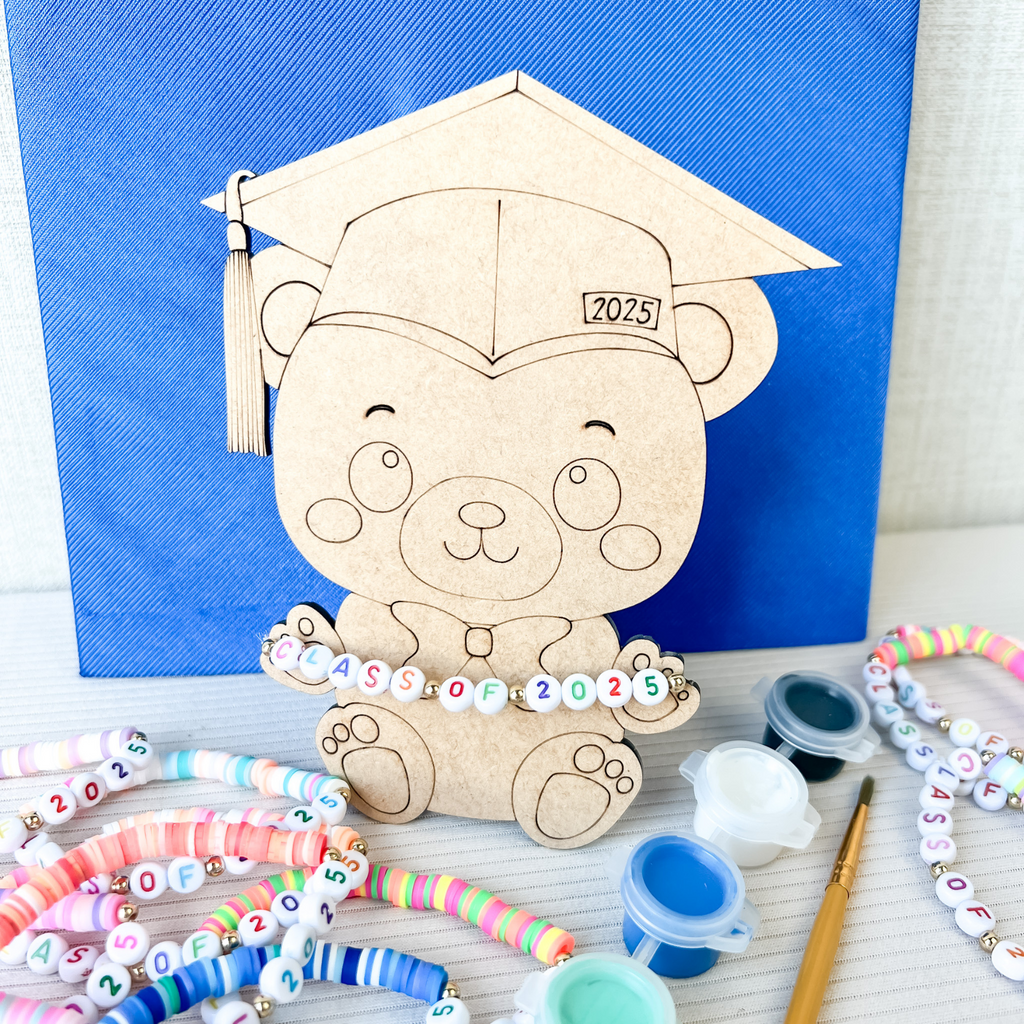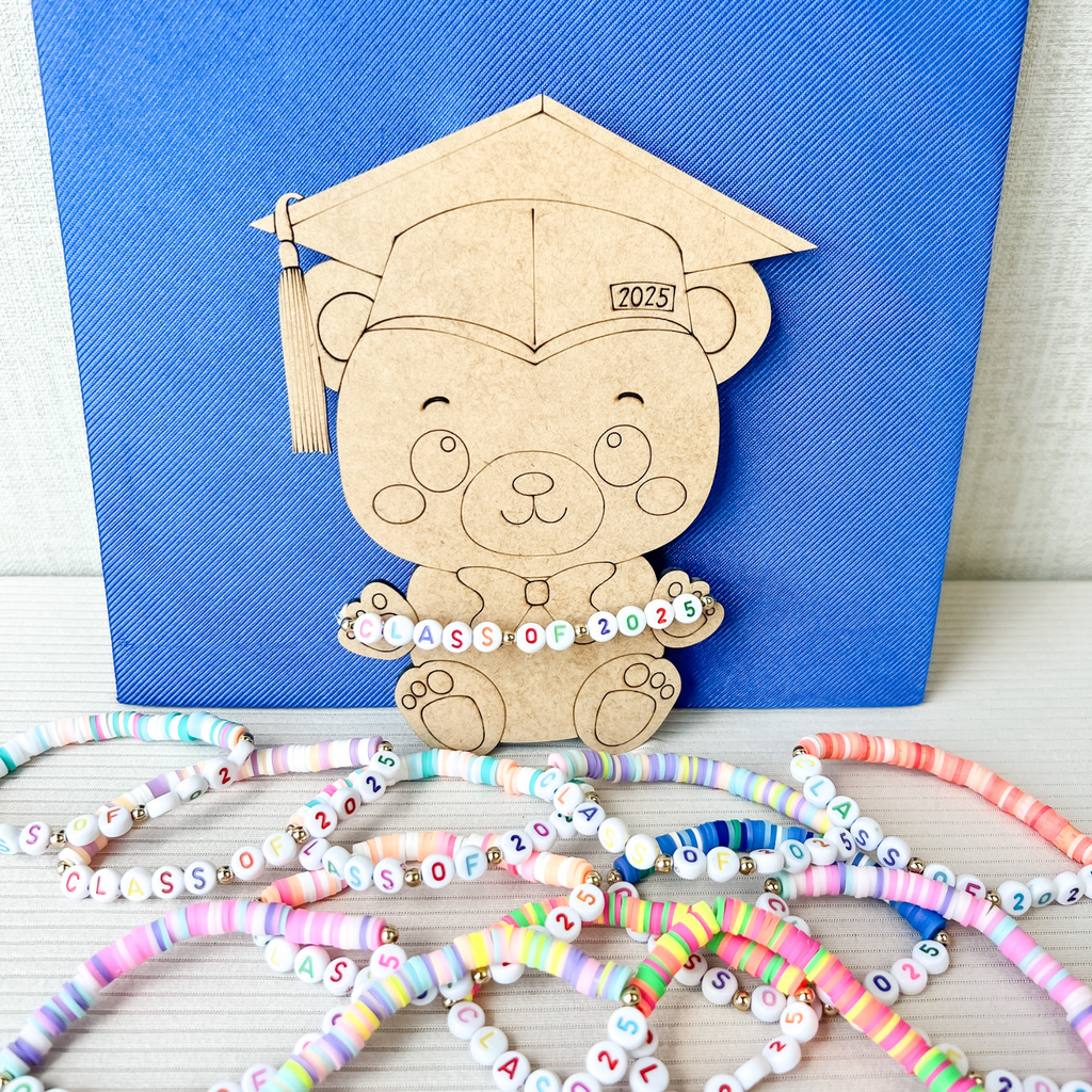 Celebrate your little graduate with this adorable laser-ready teddy bear holding a “Class of 2025” beaded sign! Perfect for preschool and kindergarten graduations, this sweet keepsake can be customized with paint or left natural for a charming raw wood look. Use it for party favors, classroom gifts, or photo props that families will treasure forever. Quick to cut and easy to assemble—this design is made for makers who love a fast, fabulous project!