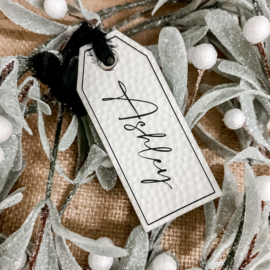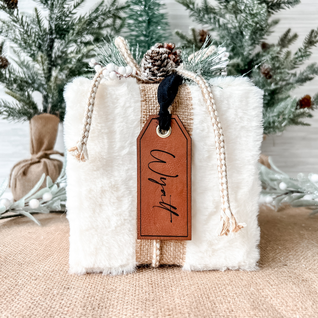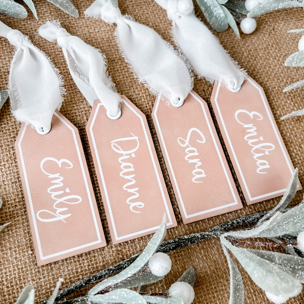 Elevate your holiday decor with these elegant leatherette stocking tags, perfect for adding a personalized touch to each stocking!